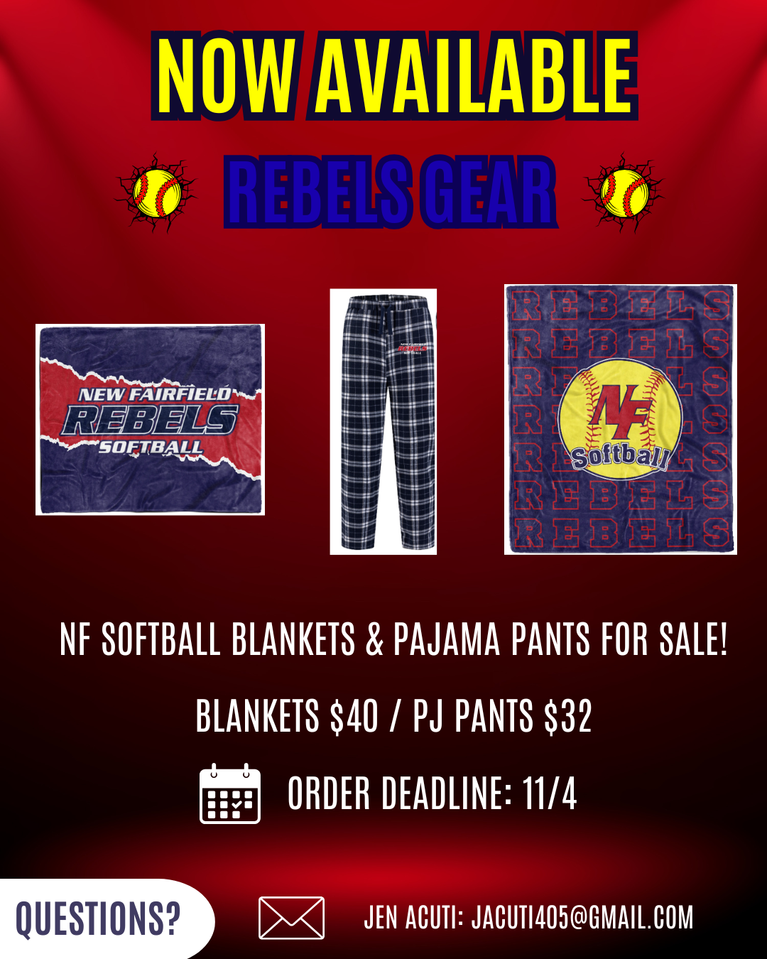 Stay cozy this holiday season with our Rebels Softball Blankets & Pajama Pants! Perfect for lounging at home, chilly game days, or showing off your team pride.